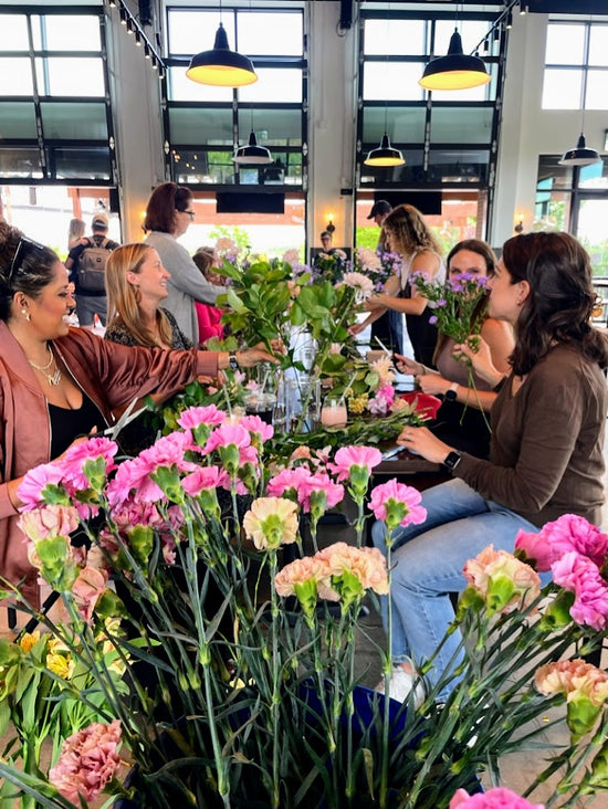 Grab someone you love and learn the basics of floral design with local NC blooms! Guided instruction will teach you all the tips and tricks you will need to make a beautiful arrangement to bring home with you.